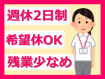 | 勤務時間 | 8:30~17:30 ※休憩時間:60分 ※時間外労働時間:なし ※年間休日数:105日 |