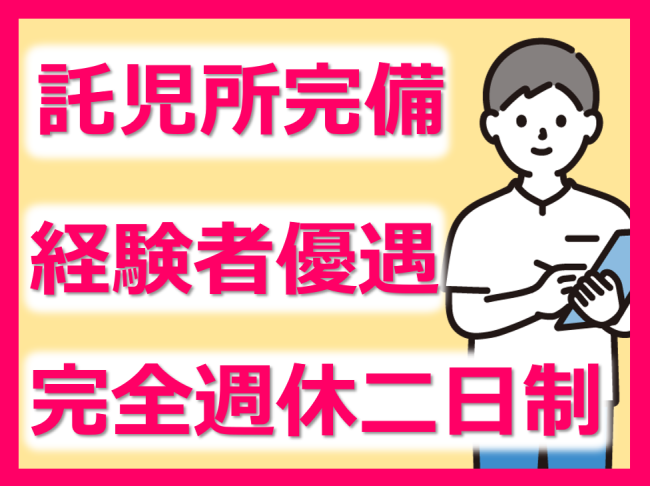 託児所あり/経験者優遇/2025年4月新規開設/残業少なめ/日曜休/賞与3カ月/盆・年末年始休み