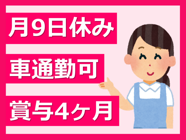 介護福祉士歓迎/無資格者、未経験者も積極採用/賞与4カ月/月9日休/希望休あり/資格取得支援あり