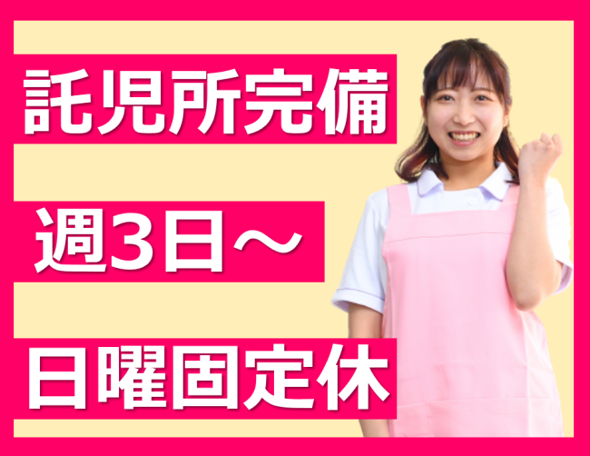 託児所完備/週3日~/一日4時間/午前のみの仕事!仕事と家事が両立しやすい/日曜固定休/昇給あり