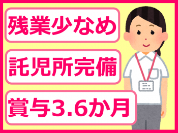 託児所完備/残業少なめ/経験者優遇/ブランクOK/日勤のみ/子育て中のスタッフを支援!