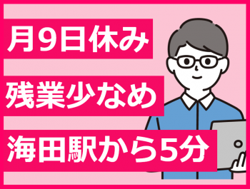 | 勤務時間 | 8:30~17:30 ※休憩時間:60分 ※時間外労働時間:月平均10時間 ※年間休日数:110日 |