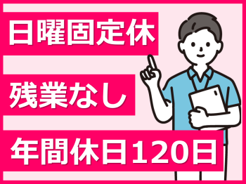 | 勤務時間 | ①7:30~16:30 ②8:00~17:00 ②8:30~17:30 ※①②③のシフト制 ※休憩時間:60分 ※時間外労働時間:月平均10時間 ※年間休日数:124日 |
