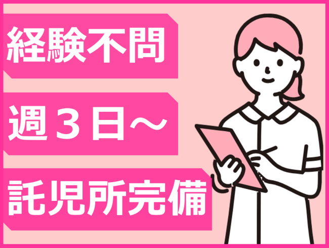 託児所完備!子育て中の方も安心/経験不問/日祝固定休/勤務日数相談OK/入職3ヶ月で有給付与