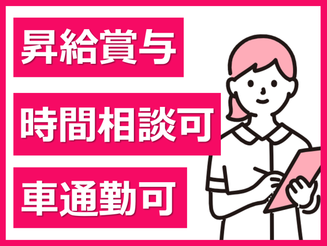 看護業務経験者歓迎/残業月平均4時間と少なめ/勤務時間帯応相談/マイカー通勤OK