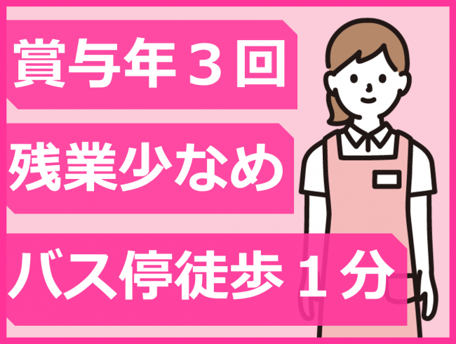 福利厚生充実/賞与年3回(3.9か月)/資格を生かして働けます/車通勤OK/バス停徒歩1分