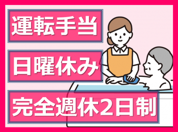 ※車通勤OK!バイク通勤OK!(駐車場あり、送迎業務で自家用車を使用する場合のみ、マイカー通勤可)勤務時間 8:30~17:30